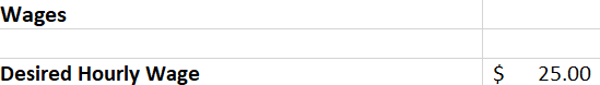 We may have discussed a lot of the hard costs here, but a very important question still remains – how much do you want to be paid? This could vary widely depending on the cost of living in your area and your skill/experience level. For simplicity, we chose $25 as our ‘desired hourly wage’. You can update this as you see fit.